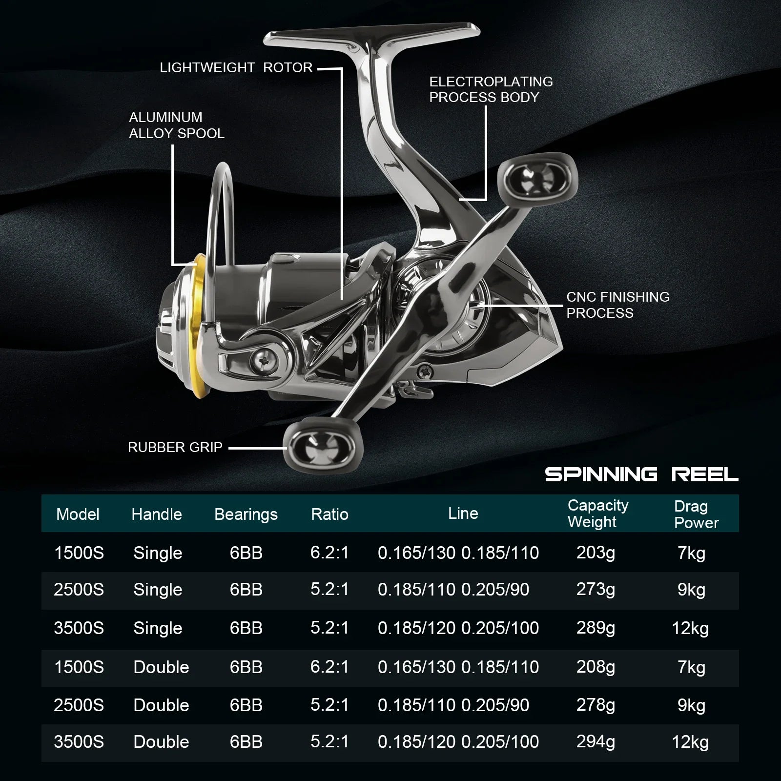 Mavllos BLAST Bass Fishing Reel,Ratio 5.2:1 Brake Force 12kg Shallow Spool Double Handle Freshwater Bass Bait Spinning Reel