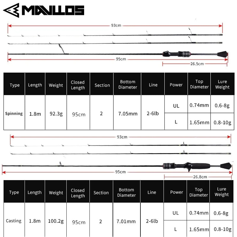 Mavllos Delicacy Fishing Rod,Two Tips,Lure 0.6-8g/0.8-10g Line 2-6lb