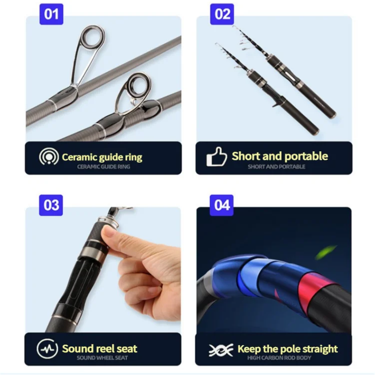 Casting Rod Length : 1.5M|Sections:7| Lure Wt: 2-10g | Line Wt: 2-8lb | Top Diameter:0.9mm | Bottom Diameter:11.5mm |Guide Quantity:6