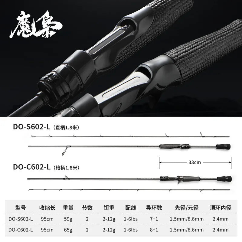 Mavllos MOXIAO Bass Spinning Rod 1.8m Line 1-12lb Lure 2-28g Fast Tip 2 Sections L Tip Light Fast Action Carbon Casting Rod