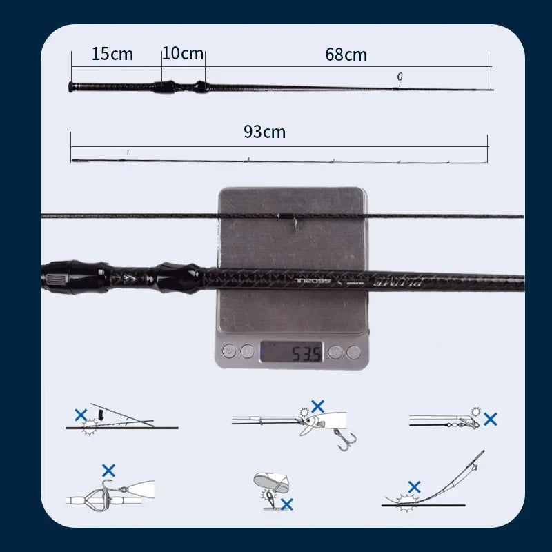 Length: 1.8m | Closed Length: 93cm | Section: 2 | Action: Fast | Power: UL | Weight:53.5g | Top Diameter: 0.75mm | Bottom Diameter: 15.05mm | Line Weight: 2-6lb