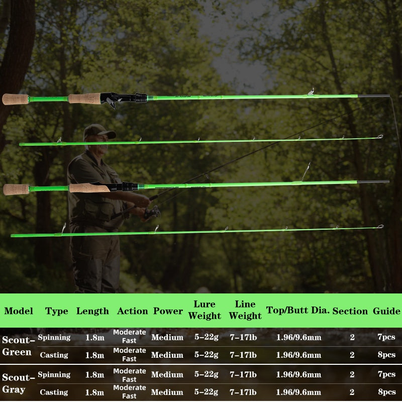 Simple Rod Designed and Standard Parameter-Green Body Design +Black Rod Label will never go out of style. Enjoy fishing with standard ultralight rod's parameters.