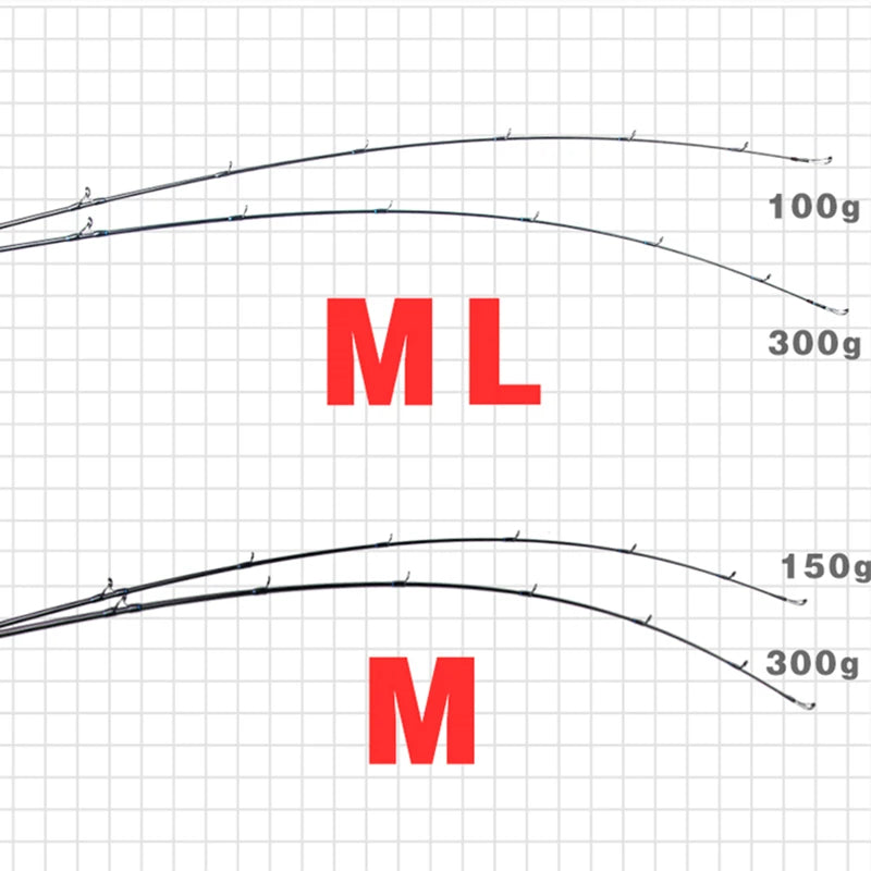 * Length: 1.83m | Power: M| Top Diameter: 1.7mm | Bottom Diameter: 11.6mm | Weight: 168g | Lure Weight: 80-350g | PE: 1.5-3.0# | Action: Slow | Handle Length: 53cm | Top Section's Length: 138cm
