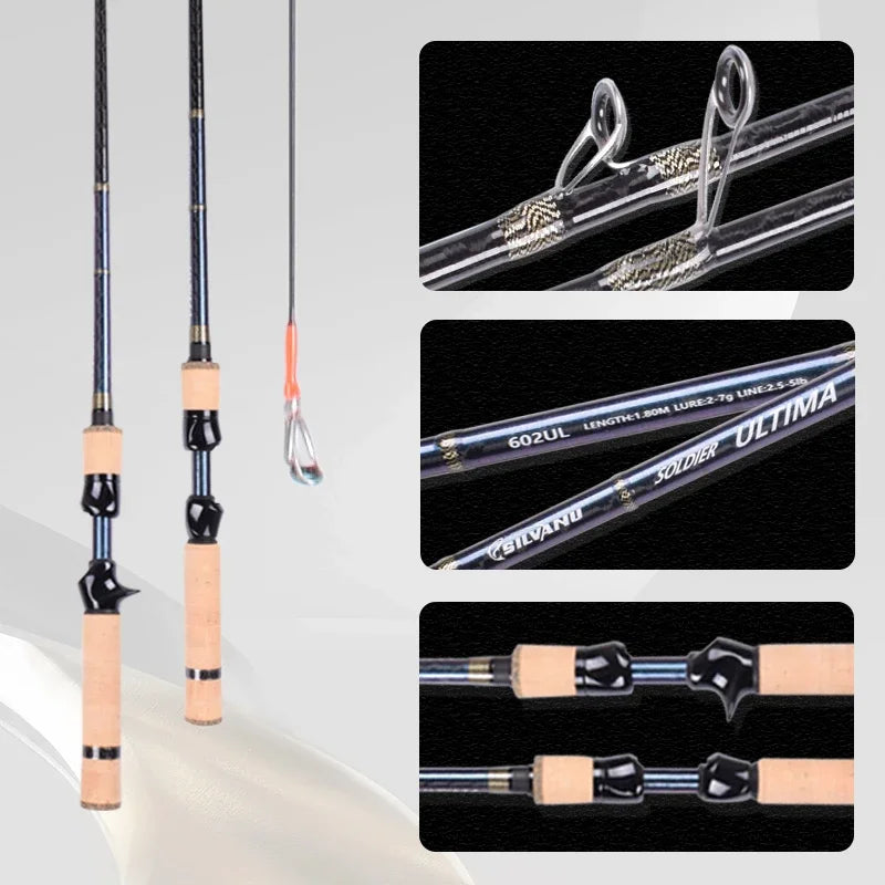 Casting Rod |Length: 1.8m | Closed Length: 94cm | Section: 2 | Action: Fast | Power: UL | Weight:73.2g | Top Diameter: 0.8mm | Bottom Diameter: 13.8mm | Line Weight: 2-6lb |Ring: FUJI Guide 9pcs